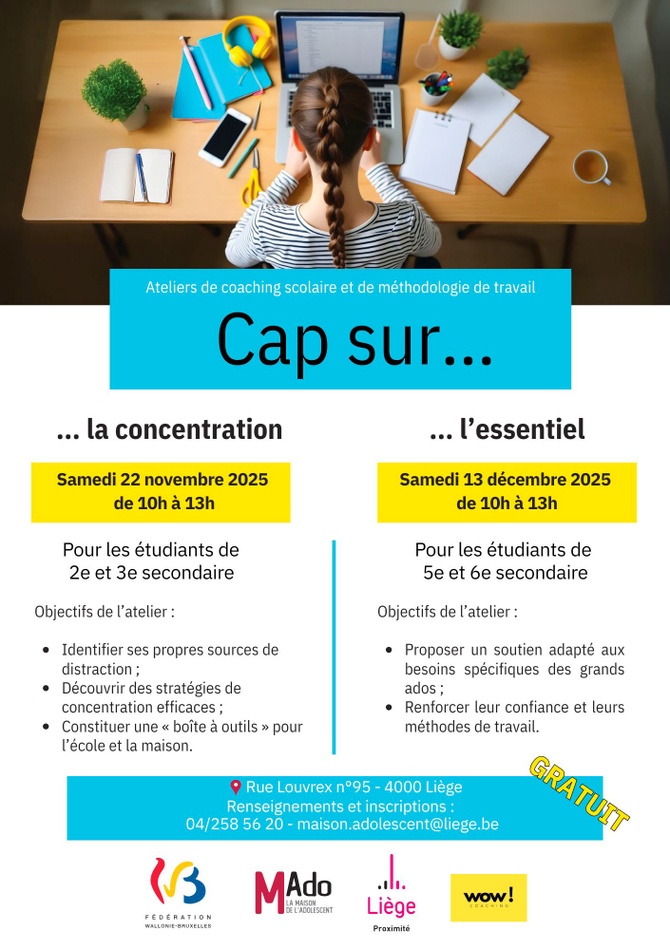 Deux ateliers de coaching scolaire et méthodologie de travail