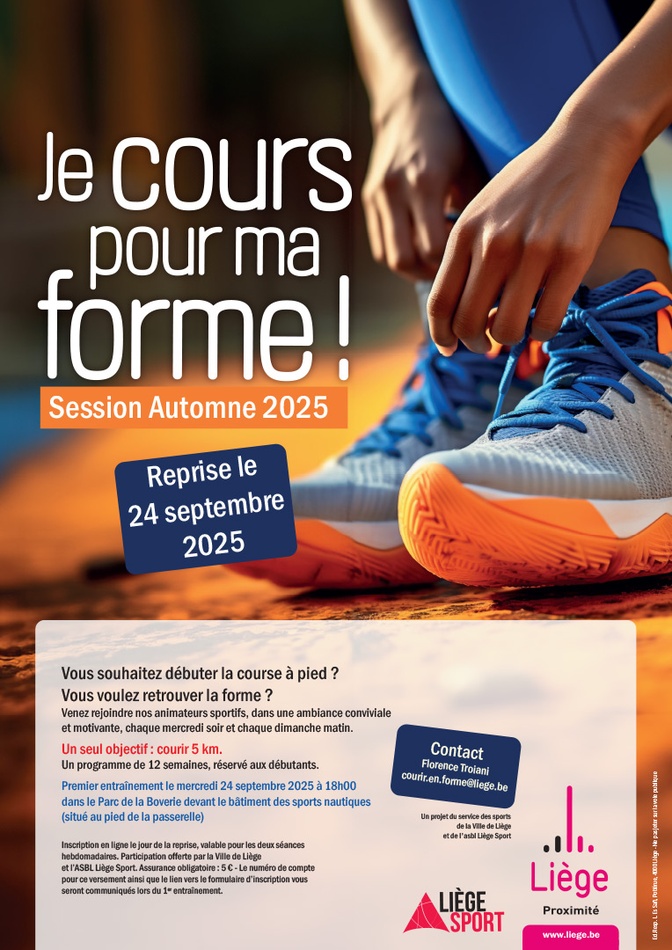 Inscription en ligne : https://www.liegesport.be/je-cours-pour-ma-forme/