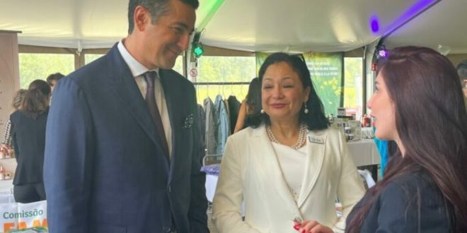 Intervenant à la suite de son époux, la princesse Isabella Orsini de Ligne-La Trémoille s’exprime avec conviction sur les bienfaits de l’agriculture biologique pour l’environnement et la santé. « Quand on croit en quelque chose pour améliorer la situation dans le monde, il faut se battre pour le concrétiser. Ce n’est pas une question de couleur (de peau), de race ou de religion ». Elle rappelle qu’il est question de préparer un monde meilleur pour les générations futures. « On est tous concernés, réunis pour la même cause. La vraie guerre, ce n’est pas celle qu’on fait avec les armes, mais avec le cœur », précise la princesse Isabella Orsini de Ligne-La Trémoille.
