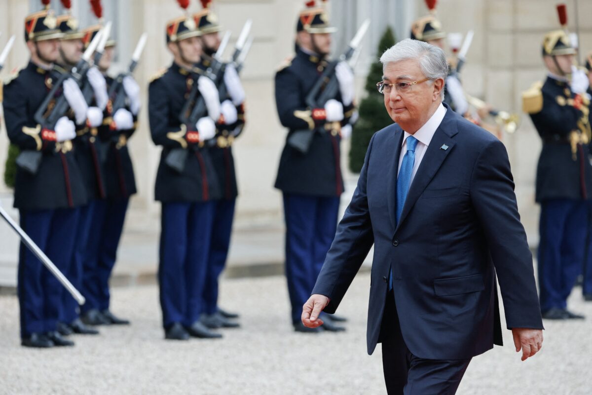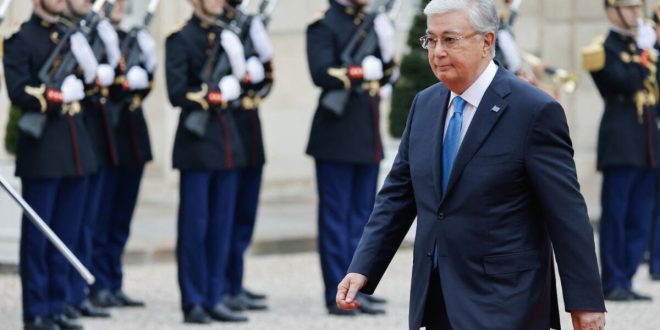 Le président du Kazakhstan, Kassym-Jomart Tokaïev, lors d’une visite à Paris en novembre 2024. La justice kazakhe veut avoir accès aux documents saisie chez l’avocate kazakhe, Botagoz Jardemalie, mais elle est déboutée par la Cour d’appel de Bruxelles. Ludovic MARIN / AFP