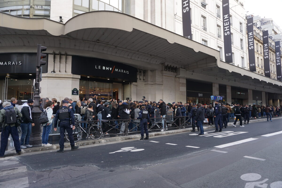 La première journée d’ouverture du premier magasin physique de Shein à Paris a attiré du monde, mais a été encadrée par une présence policière. D.R.