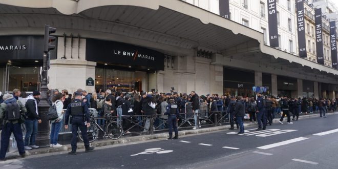 La première journée d’ouverture du premier magasin physique de Shein à Paris a attiré du monde, mais a été encadrée par une présence policière. D.R.