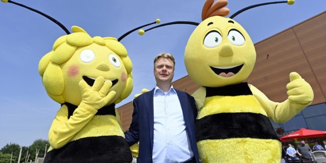 Steve Van den Kerkhof pose lors de l’inauguration de Plopsaqua Hannut-Landen en juin 2021. BELGA