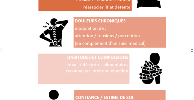 Quoi ? une approche qui augmente la conscience de soi et du monde. Au lieu “d’endormir” l’attention, on l’élargit : la personne est présente, guidée, voit ses problématiques autrement et entrevoit elle-même ses propres solutions.