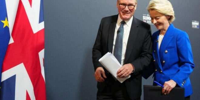 Le Premier ministre britannique, Keir Starmer (à gauche sur la photo) et la présidente de la Commission européenne, Ursula von der Leyen (à droite) lors d’un sommet Royaume-Uni-Europe le 19 mai 2025 à Londres. (Carl Court / POOL / AFP).