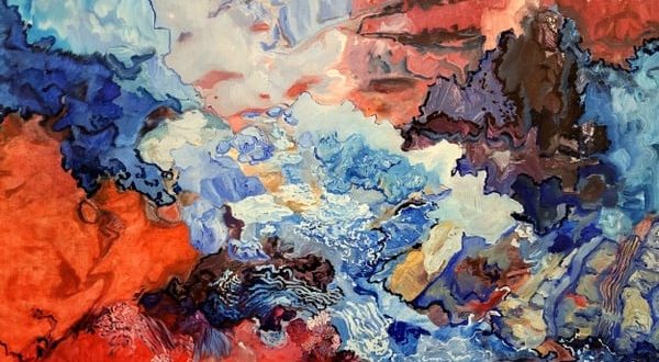 Dans un foisonnement de couleurs, – aucun pixel ne lui échappe – elle met à jour les naissances, les détours des ruisseaux, leurs parcours serpentés.