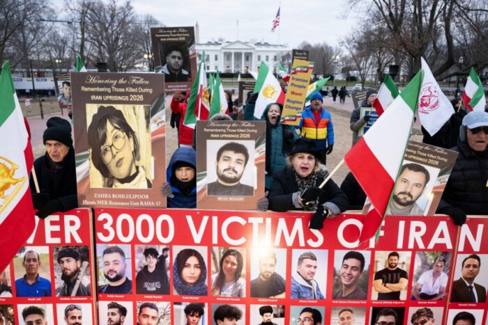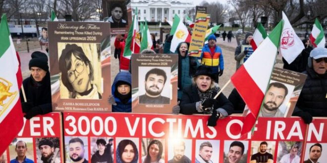 Des Américains d’origine iranienne se rassemblent devant la Maison Blanche à Washington, le 16 janvier 2026, pour rendre hommage aux milliers de manifestants tués en Iran et appeler les dirigeants politiques à soutenir le peuple iranien. (SAUL LOEB / AFP).