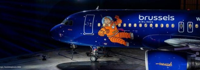 Après son Airbus A320, baptisé dès 2025, « Rackham », un appareil déguisé en célèbre sous-marin requin de l’album de Tintin « Le Trésor de Rackham le Rouge », Brussels Airlines continue de rendre hommage à l’un des personnages de bande dessinée belges les plus appréciés en dévoilant sa nouvelle Belgian Icon pour 2026 : Gravity, un appareil arborant une livrée magnifique dédiée à Tintin, un nouveau design s’inspirant de la célèbre fusée rouge et blanche de l’album « On a marché sur la Lune » . Un design unique toujours inspiré des Aventures de Tintin, un véritable ambassadeur de notre patrie et réalisé en collaboration avec Tintinimaginatio. Une création nouvelle qui célèbre pour la deuxième fois consécutive l’un des héros de bande dessinée, créé par Hergé, l’un des personnages les plus emblématiques et appréciés.