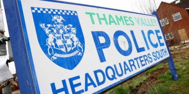 Une pancarte est visible devant le quartier général de la police de la vallée de la Tamise à Kidlington, au sud-ouest de Londres, le 19 février 2026. L’ancien prince Andrew a été arrêté le 19 février 2026, soupçonné d’inconduite. (Toby Shepheard / AFP).