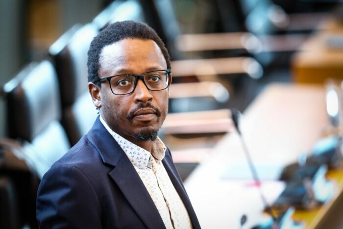 Chef de groupe PTB au parlement wallon, Germain Mugemangango, demande à son ancien camarade de parti, Jori Dupont, de rendre son mandat de député régional. (BELGA PHOTO BRUNO FAHY).