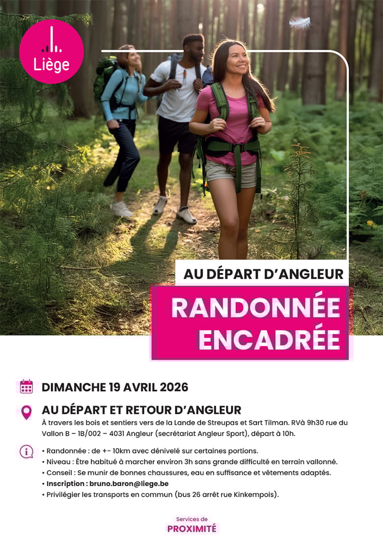 Randonnée au départ d’Angleur dimanche 19 avril 2026.